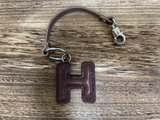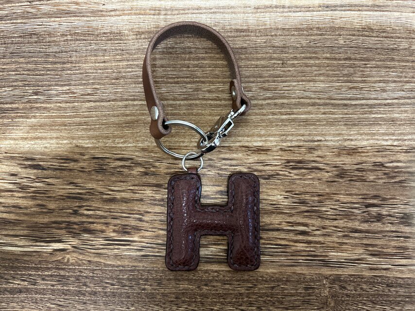 姫路レザーアルファベットぷっくりキーホルダー◆焦げ茶 H チャーム バックチャーム イニシャルキーホルダー