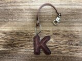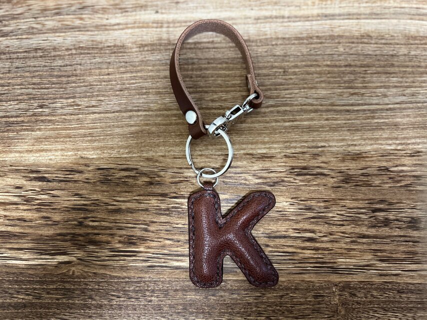 姫路レザーアルファベットぷっくりキーホルダー◆焦げ茶 K チャーム バックチャーム イニシャルキーホルダー