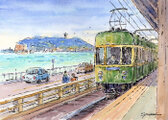 水彩画原画 江ノ電・鎌倉高校駅ホーム #705