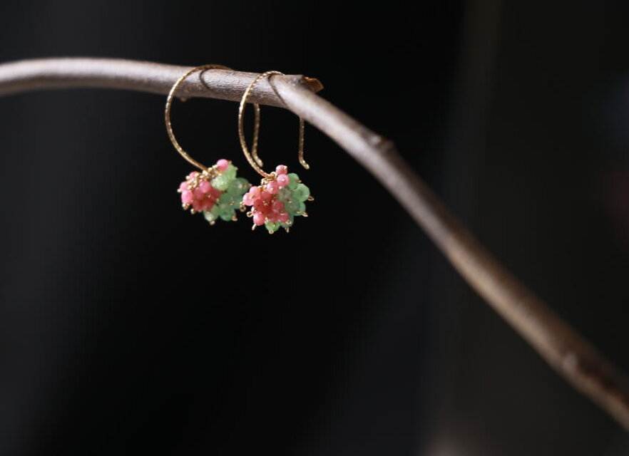 アネモネカラー・天然石と絹のネックレスパールの位置によって、長さはもちろんトップの形を変えられるのがユニークで変化が楽しめて嬉しいです。 以前ネックレスを落としてしまったことがあるので、被り式のネックレスは安心して身につけられて助かります。 ネック部分やタッセルがシルクで、汗ばむ季節にも肌あたりが柔らかそうで嬉しいです。トップに合わせたタッセルの色合いも好きです。 素敵な作品をありがとうございました!