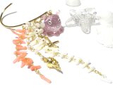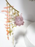 華やかな桃色と、柔らかい白色の枝珊瑚をたっぷりと使用し、枝珊瑚を一つ一つ丁寧にワイヤーで繋ぎました。動きがあるたびに枝珊瑚が揺れ、印象的です。