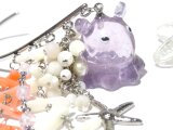 UVレジンで自作しました、透き通ったふじ色のメンダコをメインに、珊瑚や貝といった海をイメージさせるモチーフでまとめたイヤーフック。
