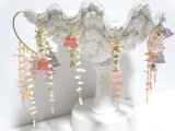 華やかな桃色と、柔らかい白色の枝珊瑚をたっぷりと使用し、枝珊瑚を一つ一つ丁寧にワイヤーで繋ぎました。動きがあるたびに枝珊瑚が揺れ、印象的です。