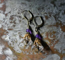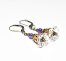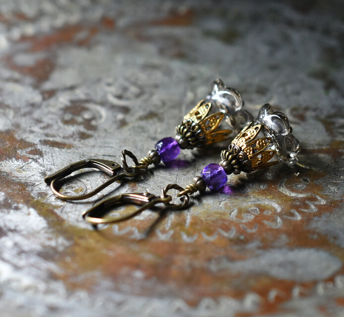 お花japanヴィンテージビーズとアメジスト、隠しブルービーズを繋いだピアスです。