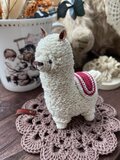 細い40番のレース糸を使用し、一針一針丁寧に編み上げたアルパカのあみぐるみです。手のひらにちょこんと乗るミニチュアアルパカ。