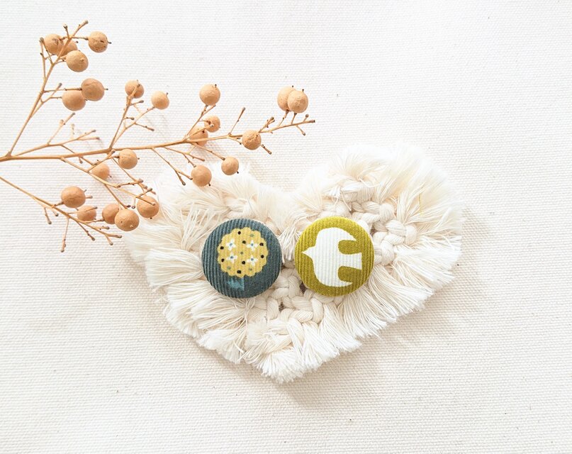 3種類のくるみボタンブローチをいただきました。作品はどれも丁寧に作られています。どれも可愛くてお洋服やカバンにつけて楽しみたいと思ってます。