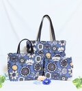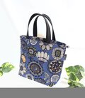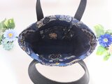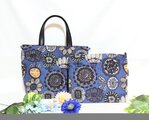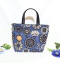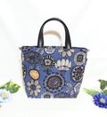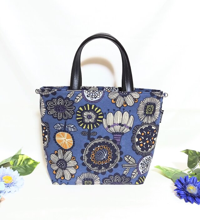 ネイビー地にモダンで大きな北欧の花柄、2Wayタイプとしてお使い頂けるお出掛けバックです。