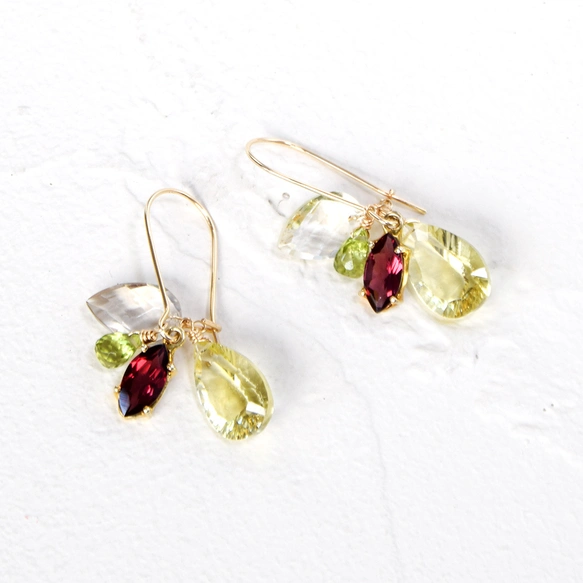 陽光のレイヤー ― レモンクォーツ×ロードライトガーネット ピアス 14kgf