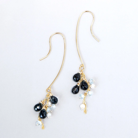 紺碧の聖夜 – ロンドンブルートパーズ ロングフックピアス14kgf