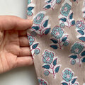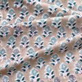 インド ブロックプリント生地 [50cm単位切売]サンガネリ ブルーフラワー on ライトブラウン 花SA IF0425