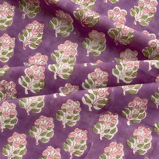インド ブロックプリント生地 [50cm単位切売]ピンクフラワーXパープル地 木の実 ベリー SA IF0419