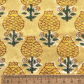 インド ブロックプリント生地 [50cm単位切売] サンガネリ イエローマム SA 花 レトロ IF0416