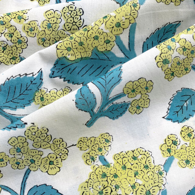 インド ブロックプリント生地 [50cm単位切売] サンガネリ イエロー ランタナ フラワー 花 SA IF0422