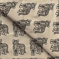 インド ブロックプリント生地 [50cm単位切売]アジュラック ベジタブルダイ タイガー アイボリー地 虎 IF0418
