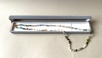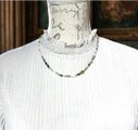 白いブラウスや淡い色のニットなど、明るいトーンのお洋服と合わせると、ビーズの色彩がより美しく引き立ちます。春先のお出かけや、美術館巡り、少し特別な日の装いにもぴったりです。