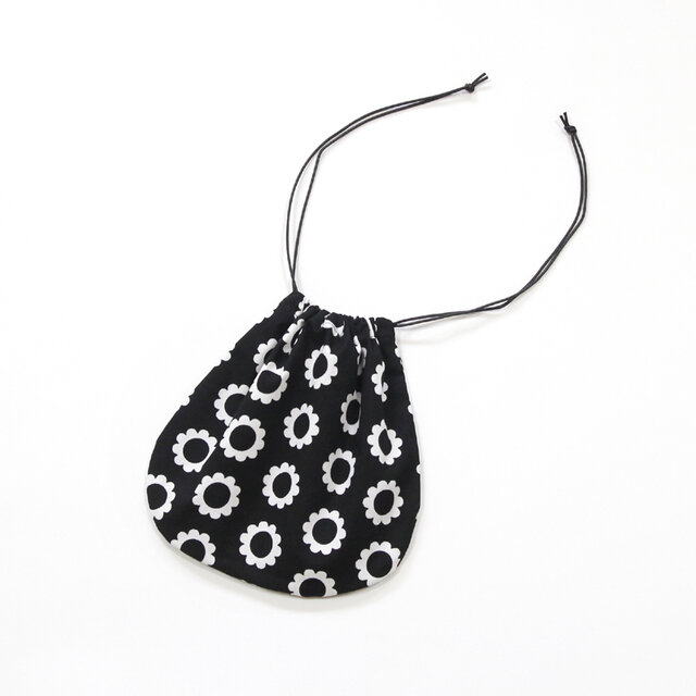 アフリカ布の巾着袋( モノクロ フラワー )インナーバッグ / 小物入れ / コップ袋 / 内袋