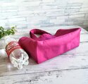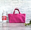横長のキャンバスミニトートバッグです。張りのある柔らかい11号帆布を使用しました。前面と背面を1枚の布で繋ぐデザインです。