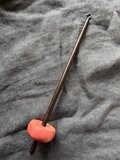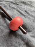ドロップスピンドルとして吊るして紡ぐこともできますが、落下の衝撃でバランスが乱れたり先端が潰れたりしてブレが生じることもございますので、サポートスピンドルとして受け皿等の上に置いて紡ぐことを推奨いたします。