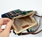 口が大きく広がりますので中が見やすく使いやすいです。背面にはポケットティッシュやボールペンが入るポケットがついています。