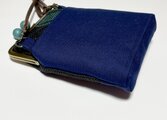 黒の織地に鮮やかな青の星のミシン刺繍をし、更にゴージャスな刺繍リボンを合わせています。