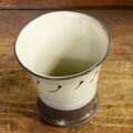素地に白い化粧泥を掛けイッチンを施してから透明釉を掛けてあります。