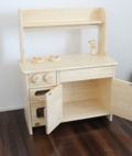 本製品はシンク部分以外は全てパイン材を使用しますので木目の整った天然パイン材の美しさ、高級感、手触りをより一層実感いただける「おままごとキッチン」となります(シンク部分のみホワイトウッド)。