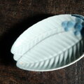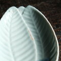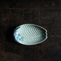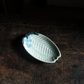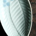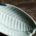 リーフと木の実◆時代物 青磁陽刻刺身皿 長方皿 葉 暮らしに。古民家 大正〜昭和初期