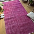 レア106×205ビビッドピンクオーバーダイ ワンカラー トルコヴィンテージラグ