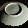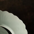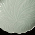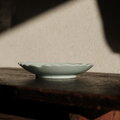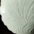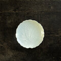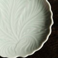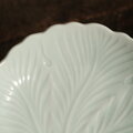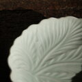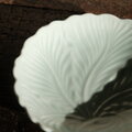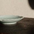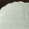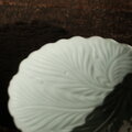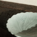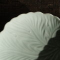 リーフの形状◆時代物 青磁陽刻中皿 葉 暮らしに。古民家 古道具 大正〜昭和初期