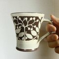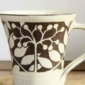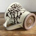 カップ全体に白い化粧泥を掛けナナカマドを描いてから余分な化粧泥を削り落として図柄だけを残しています。