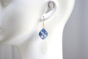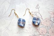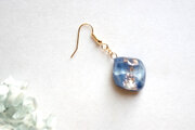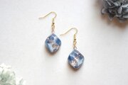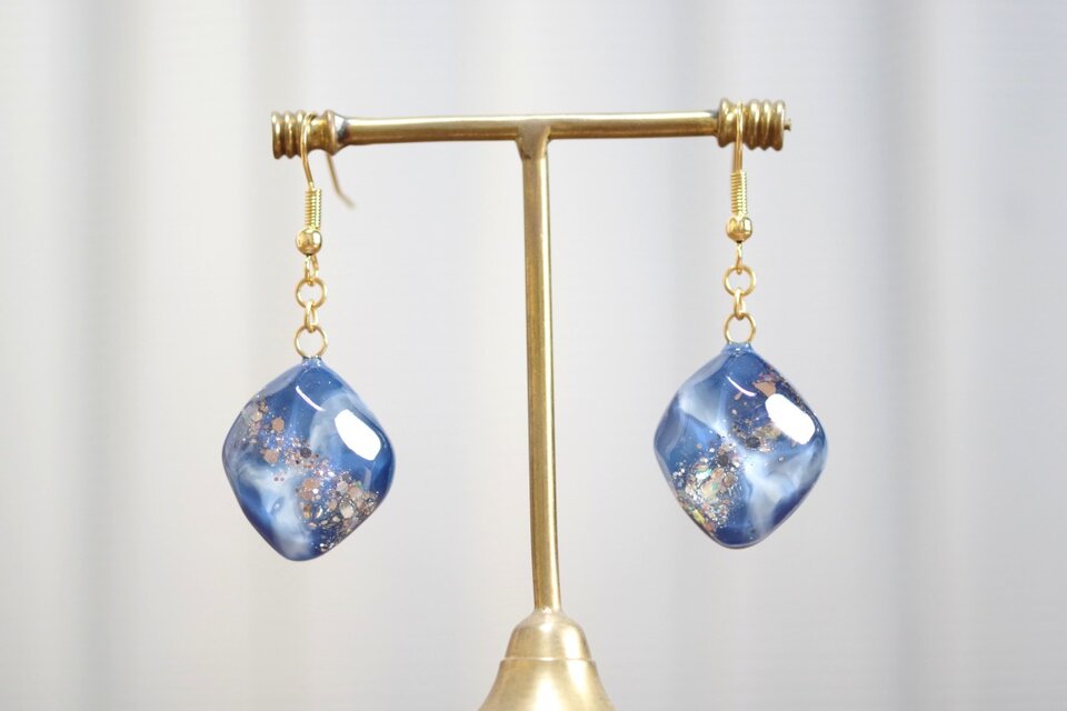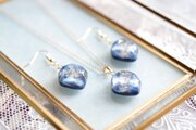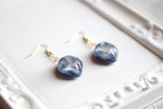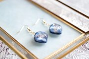 コバルトブルーとホワイトのマーブル模様と、きらめくラメが華やかで美しいピアス。