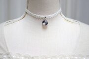 白のレースとリボンが上品で清楚な印象を与えるチョーカー。