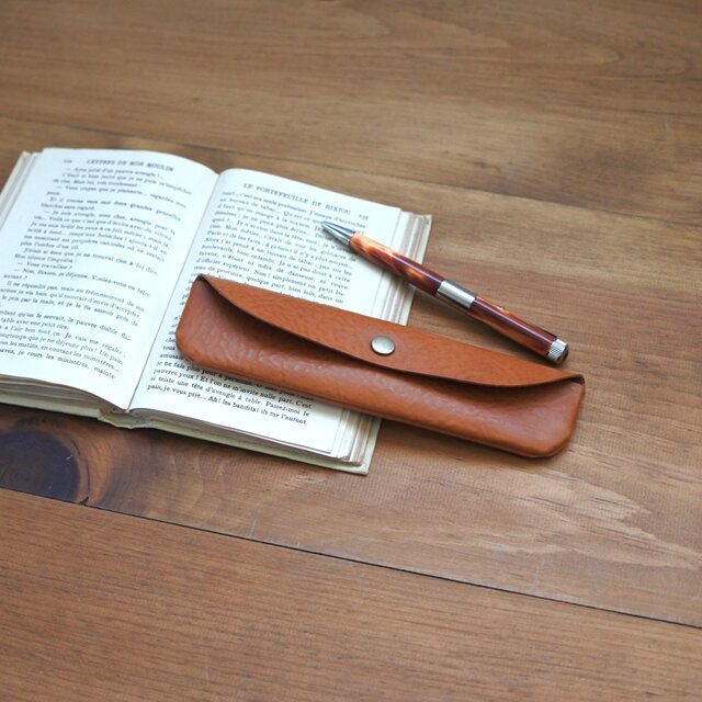味のあるやわらかめのヌメ革で作ったペンケースです。