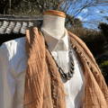 藍と柿渋染めの重ね染めが素敵な作品でした。
