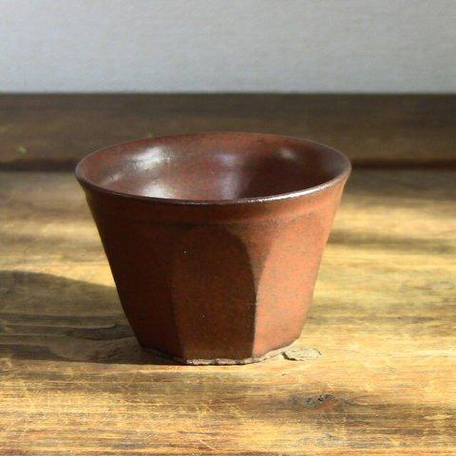 素地に面取りを施してから地釉を掛けて焼成しています。