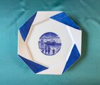 八角形を生かすように縁の部分に、青色の濃淡でシャープな三角形をデザインしました。