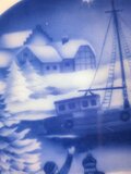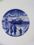 パーティー皿にも最適な大皿に、青の濃淡でクリスマスのワンシーンを表現しました。