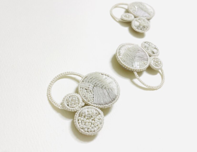 作品が届きました。繊細な刺繡とガラスビーズ、思っていた通りステキです。 いろいろな組み合わせができそうで、楽しみです。 ありがとうございました。
