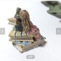 本や衣装の一部に薄く透明釉を施しているので、その部分は少し光沢があります。