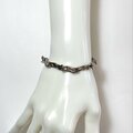 一つひとつのファスナーパーツが、わずかな角度と曲線を保ちながら手作業によって「鎖」のように繋がれ、光を受けて静かに波打つ、細く優美なシルエットを描き出します。