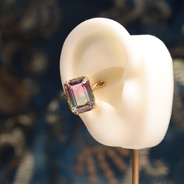 淡いピンクとブルーが溶け合う、やさしい色合いのイヤカフ。