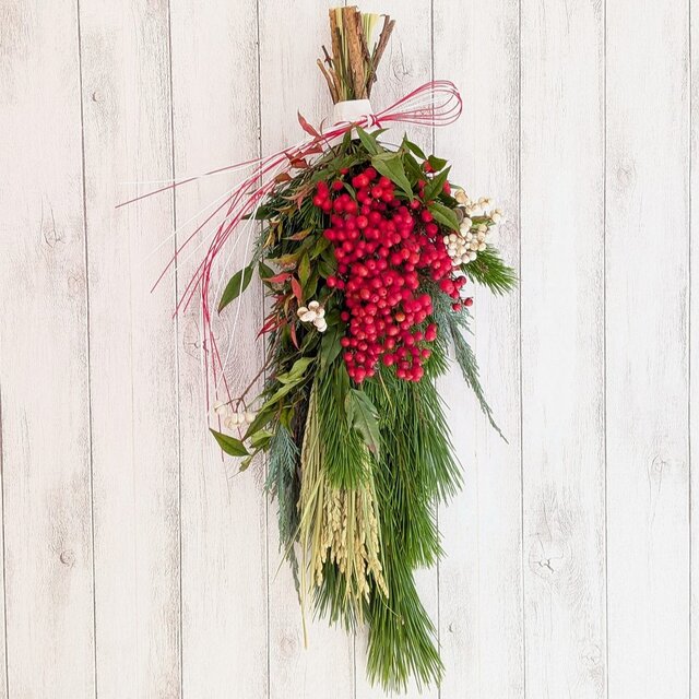 豊かに実った稲穂と南天を合わせたスマートな形のお正月飾りです。
