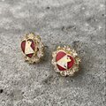 Vintage USA retro crystal bijou red enamel heart pierces