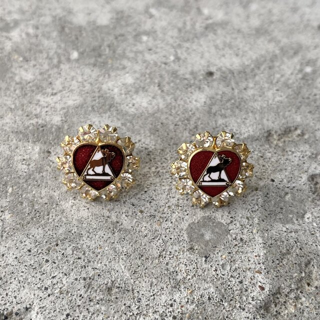 レトロ可愛いUSAヴィンテージピアス。赤いハートの周りをビジューがキラキラと輝きます。軽やかな着け心地と身につけやすいサイズ感もポイントです。