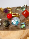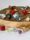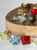 入る天然石の例、アメジスト、珊瑚、レッドアゲート、アバロンシェルクリスタル、モザイクシェル、ライムグリーンカルセドニー、ホワイトムーンストーン、