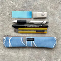 写真4枚目はサイズの参考です。ペン2本、カッター1本が入っています。お気に入りのボールペンと付箋を少し入れてお仕事にどうぞ!