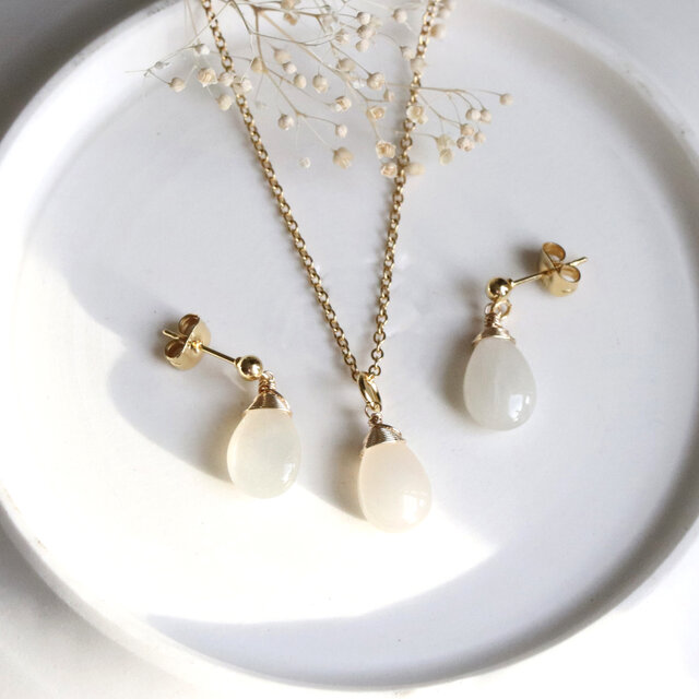 ホワイトムーンストーンのピアス(イヤリング)&ネックレスセット