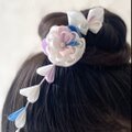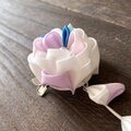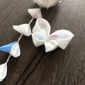 正絹の白をベースに〈薄紫〉〈薄桃〉〈青〉〈エメラルド〉をアクセントカラーにした可愛い髪飾りです。