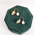 上品な曲線を描くピアス金具に、小粒なパールキャッチがワンポイント。