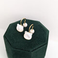 上品な曲線を描くピアス金具に、小粒なパールキャッチがワンポイント。